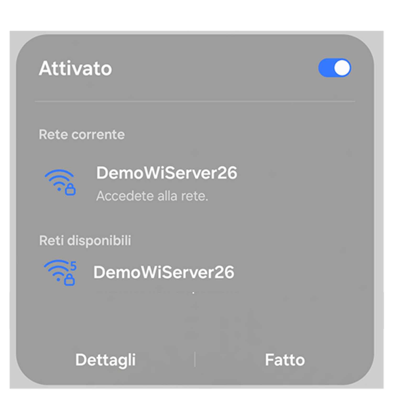 Nel caso in cui non avvenga la connessione automatica, inserisci manualmente la password WPA2 comunicata.
