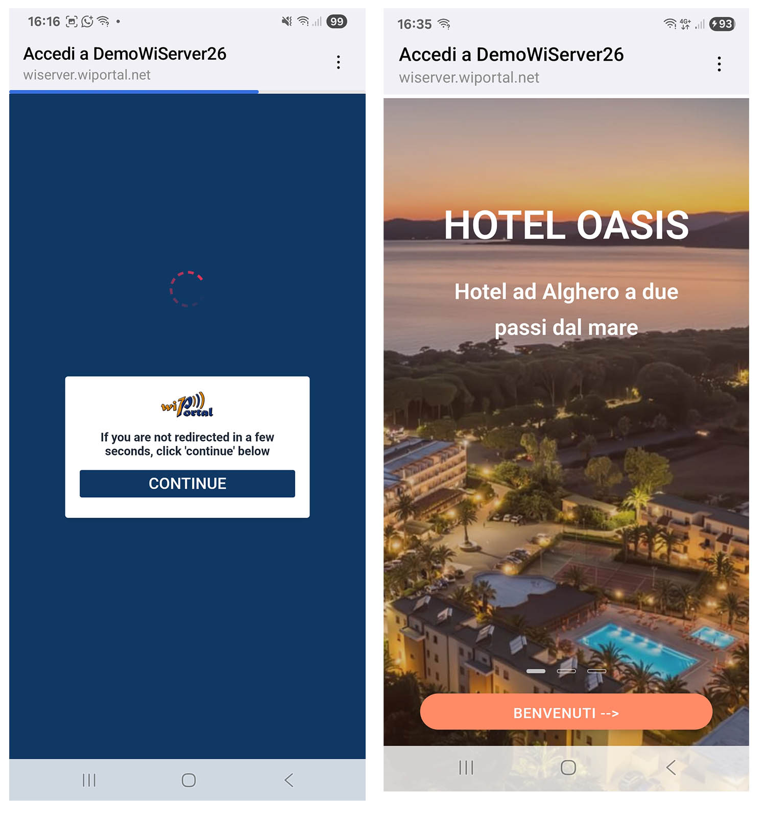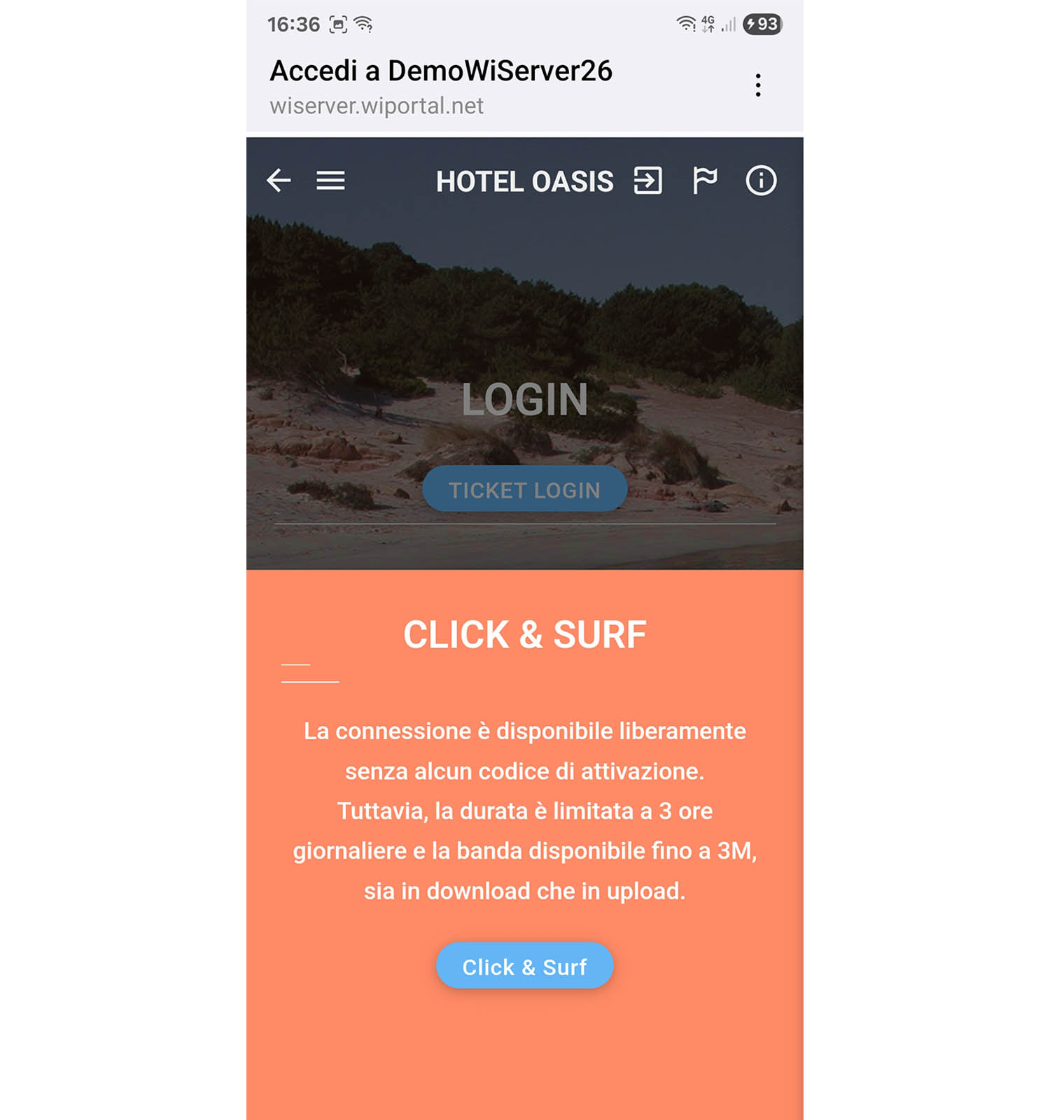 Una volta connesso, apri il browser: verrai automaticamente reindirizzato a login.wiserver.it